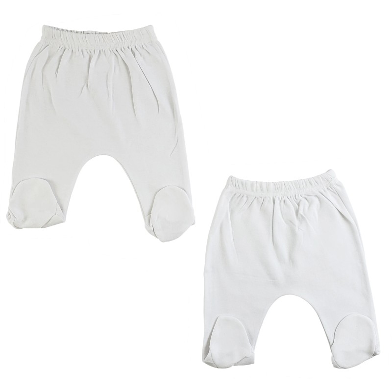 Interlock White Long Pants with Covered Elastic Waist & Ribbed Cuff - 2 Pack 100% Cotton Sizes: NB, S, M, L Colors: White