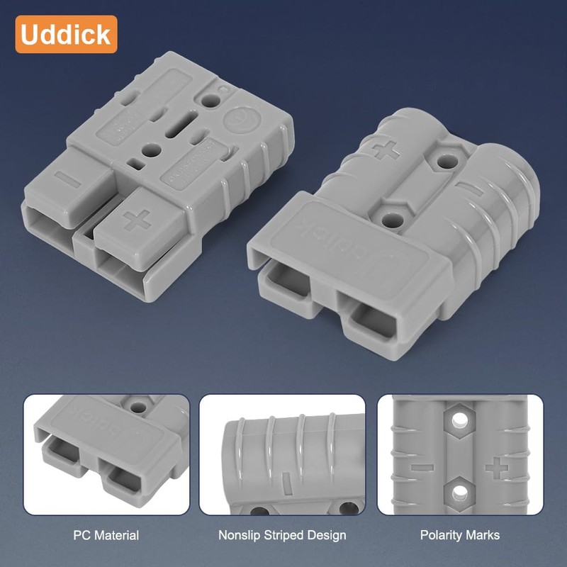 Uddick 4PCs 50 Amp Battery Quick Disconnect Connector, 8 AWG Battery Cable Connector, Quick Connect Wire Harness Plug Connector for Towing Winch, 12-24, Grey