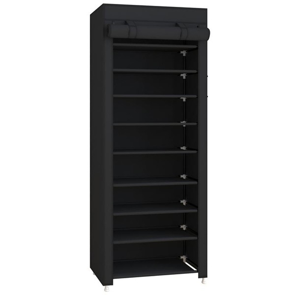 UDEAR 10 Tier Shoe Rack 9 Grids with Dustproof Cover Shoe Shelf Storage Organizer:_Black 9-Tier