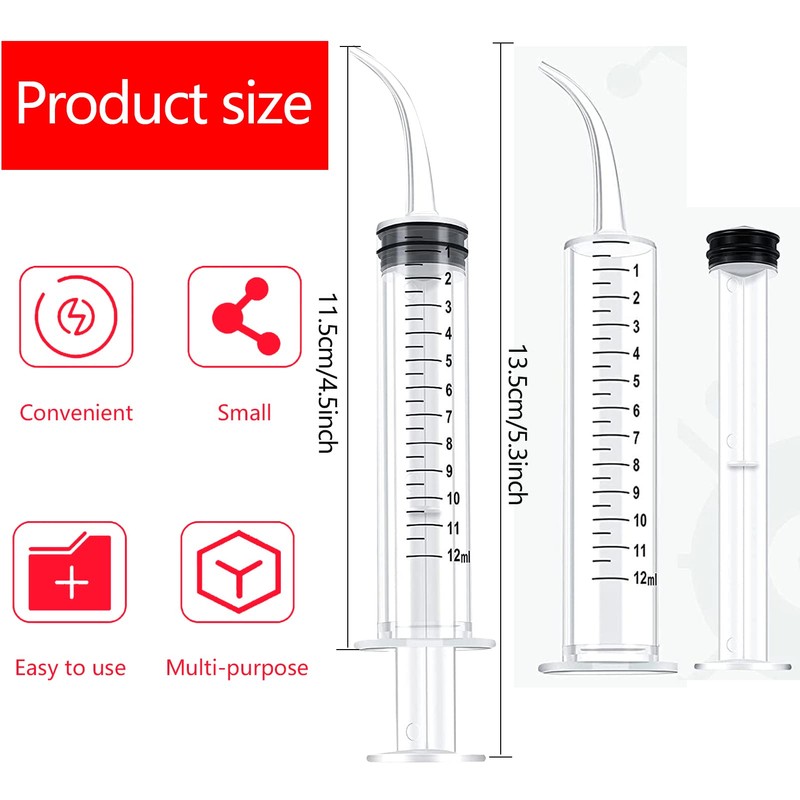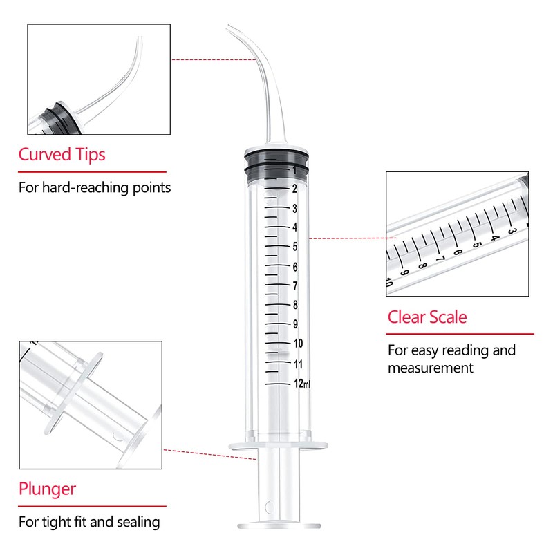 - Portable size: Dental syringes with good sealing properties are 12ml in capacity, lightweight and small in size, very convenient to carry, allowing you to take care of your mouth anytime.