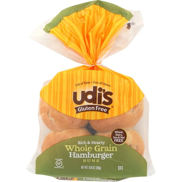 Udis, Buns Hamburgr Whole Green 4 Count, 10.8 Ounce
