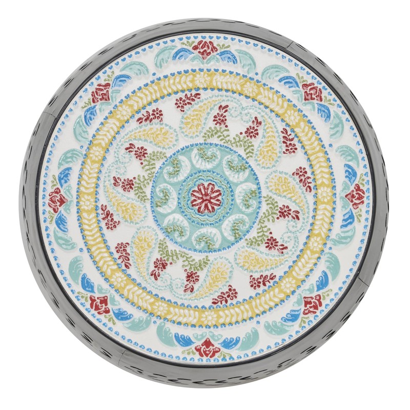 This 12-inch mosaic side table is for enhancing , whether indoors or outdoors. With its distinct Roman pattern ceramic top and black iron frame, it adds a touch of elegance and vibrant style to your surroundings.