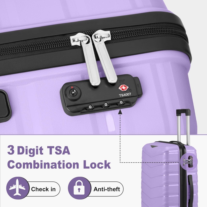 Udorich 3-in-1 V-Stripes PP Trolley Case Set, Fashionable Travel Luggage, Taro Purple, 20in 24in 28in Sizes