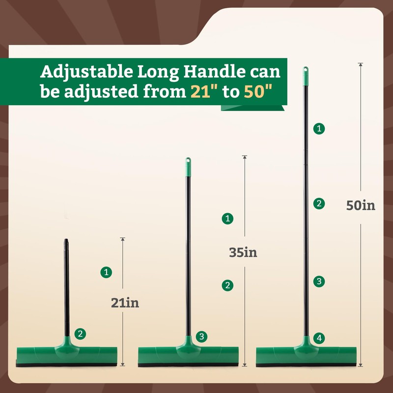 Udorich All-Surface Silicone Broom Squeegee Pet Hair Remover with Adjustable Handle, for Indoor Cleaning, Green