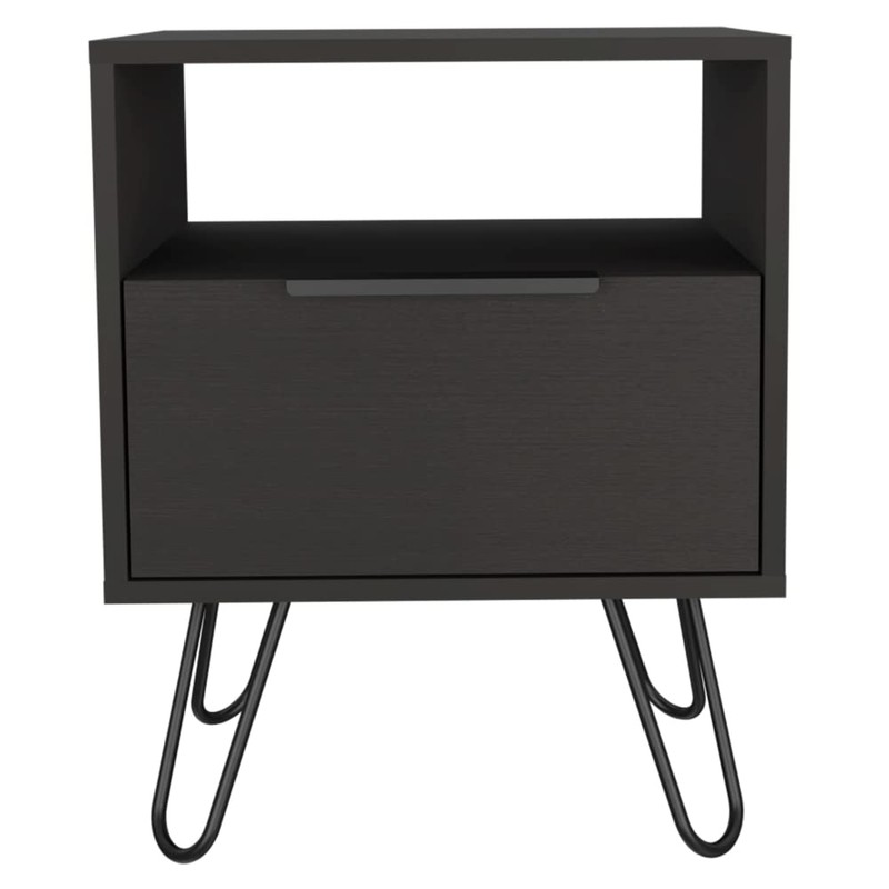 Udorich Sleek and Functional Black Nightstand with Hairpin Legs, Compact Design, Efficient Storage Solutions, Easy to Assemble