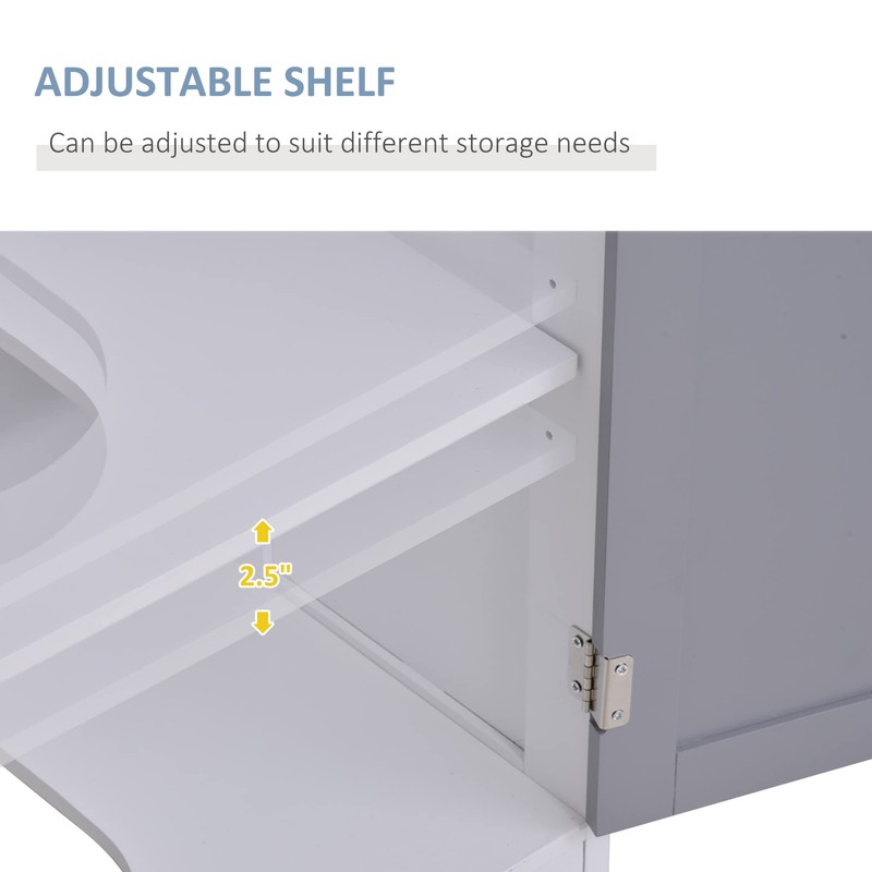 Udorich Stylish and Functional Under Sink Bathroom Storage Cabinet, U-Shape Cut-Out Design, Adjustable Shelf, White and Gray