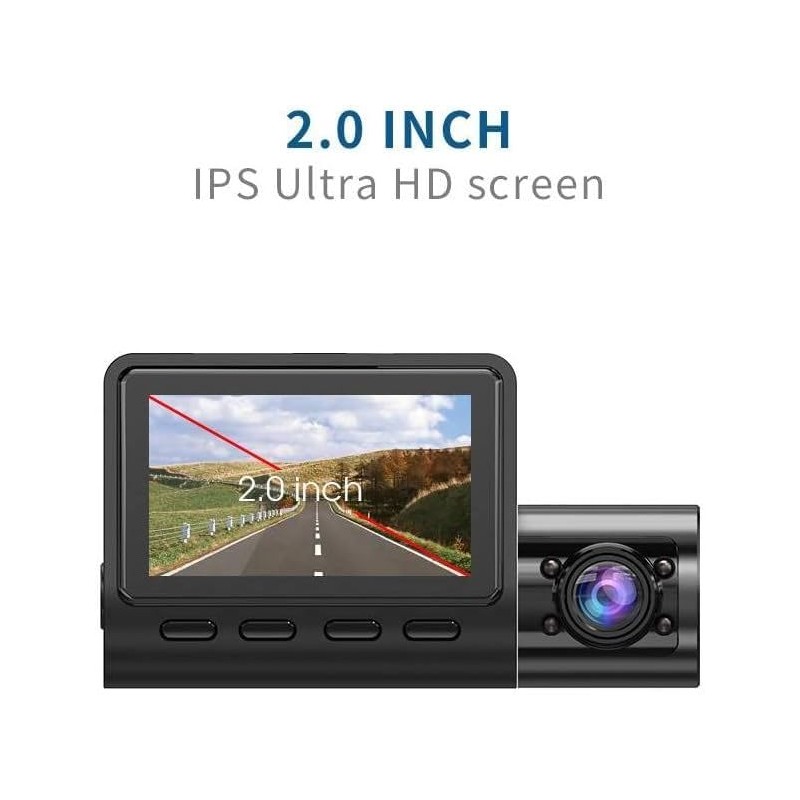 The recorder features three lenses, providing comprehensive coverage. With front, interior, and rear cameras, you can capture a complete view of your surroundings. Videos are recorded at 1080p + 1080p + 480p, ensuring clarity and detail in your recordings.