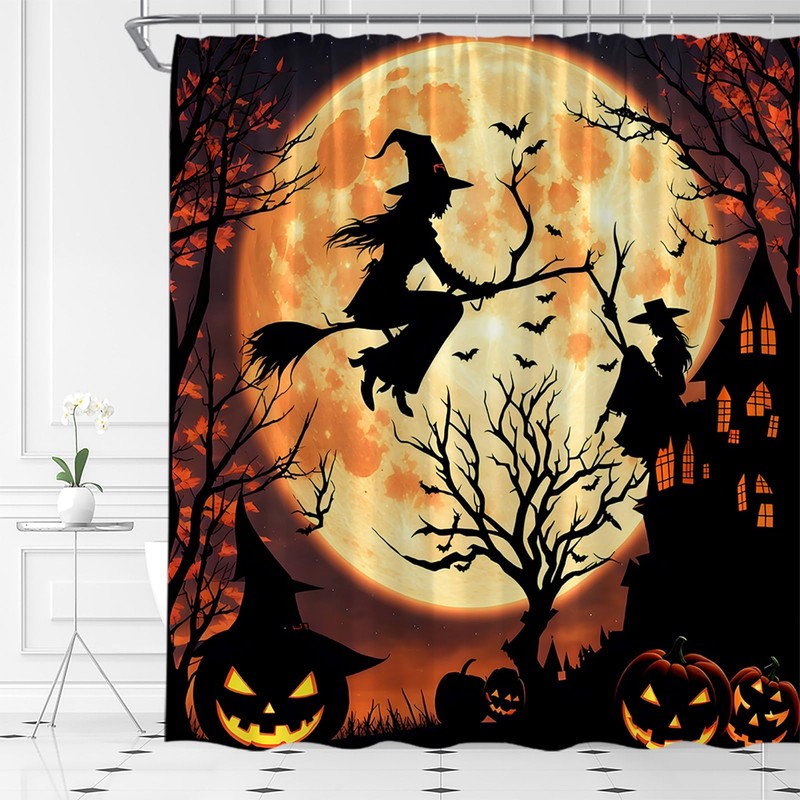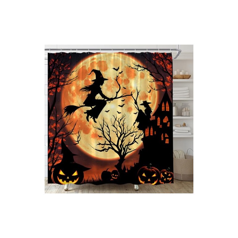 UEAUUN Halloween Shower Curtain Witch Gothic Castle Spooky Pumpkin Scary Nigh...