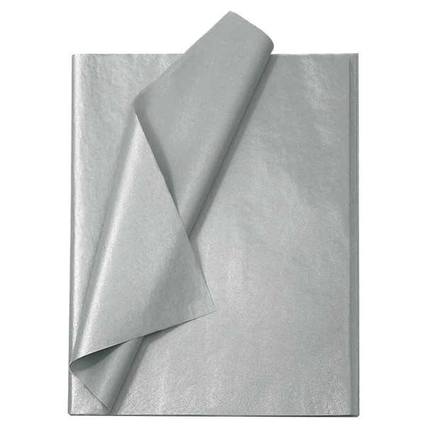 Ueerdand Gift Wrapping Tissue Paper for Packaging 105 Sheets Single-Sided Metallic Wrapping Craft Papers Bulk for DIY Artworks Flower Decoration (12 x 20 Inches, Silver)