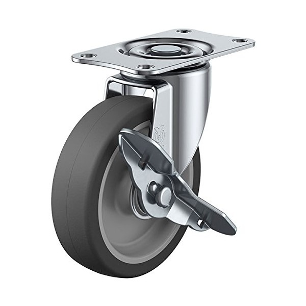 Uei Caster: E Series, E-S Type, Free-Caster with Stopper, Elastomer Car, Wheel Diameter 3.9 inches (100 mm), Manufacturer Model: E-100ELS