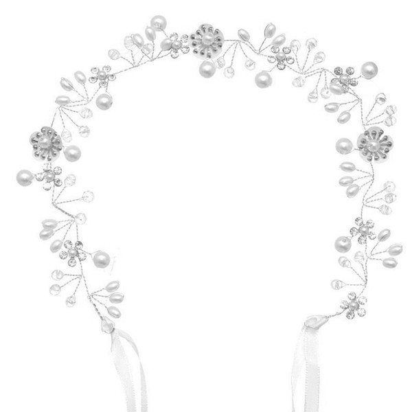 UEIOAVL Hair Bands for Women, 1 Piece Hair Band for Flower Girl Wedding Pearl Hair Band Princess Flower Headband Tiara for Wedding Bridal Bridesmaids Ladies Girls Flower Girl (Silver)