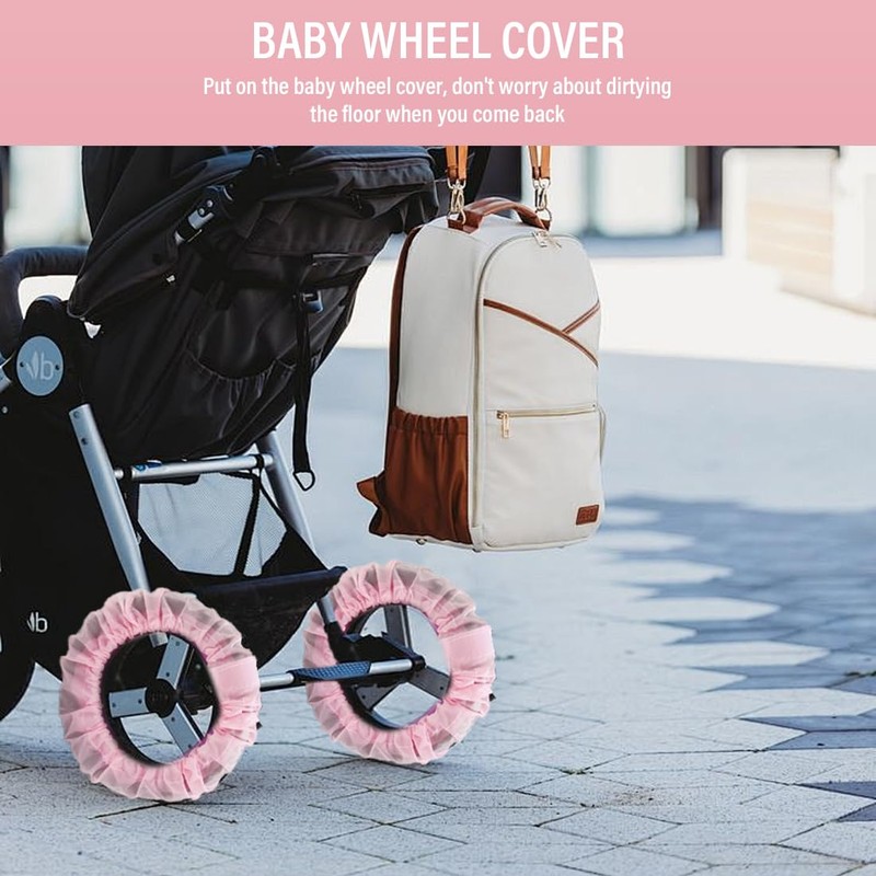 UEIOAVL Rain & Wind Protection for Stroller, 4 Piece Set with Baby Wheel Trims for Pushchairs, Waterproof Wheel Trims, Baby Wheel Protectors, Dustproof Stroller Accessories Protect Your Wheels (Pink)