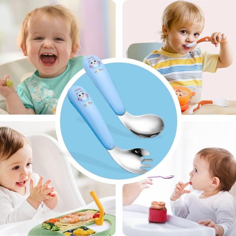 - Comfortable Design The curved spoon and fork are easy to grip and improve hand-eye coordination, perfect for right handed babies
