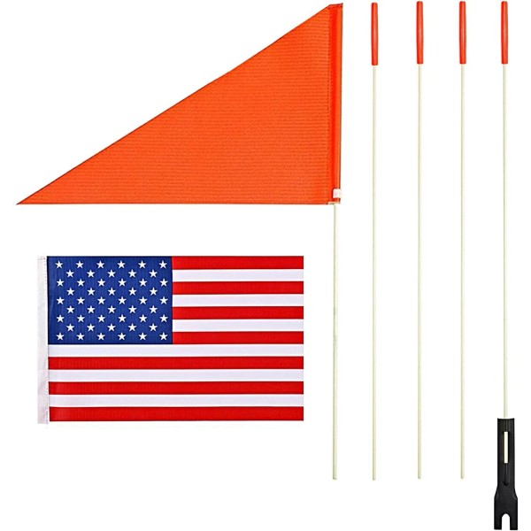 - Different Flags to Show Yourself: We offer orange safety flag for normal security purposes, also have an American flag for formal events. Bright orange is very noticeable and warning, making your children more visible when riding. Lively and bright colors bring more pleasure to your riding.
