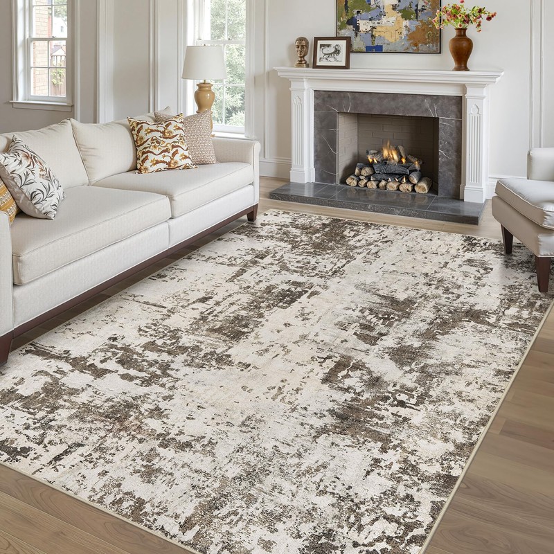 UESRUGS 9x12 Rug for Living Room : Soft Abstract Washable Non-Slip Durable Rugs, Neutral Modern Indoor Carpet for Bedroom Dining Room Home Office - Tan