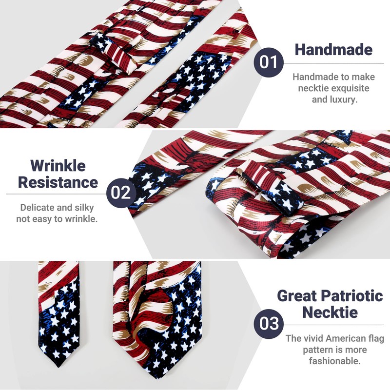 - Appealing Flag Pattern-The vivid American Flag pattern make this necktie outstanding and fashionable.