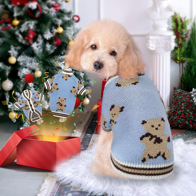 - Perfect Gifts for Christmas Dog Sweater - Blue is used as the base color of this small dog sweatshirt, and lifelike bear pattern decorates on the whole sweater, lovely and fashionable. When wearing this stylish dog cardigan sweater go to a party, your furry friend will attract lots of attention, and get countless compliments
