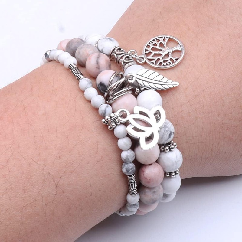 - Unique design: You will love this exquisite Tree of Life Yoga Lotus Leaf bracelet. They are made of 8mm/4mm Natural Gemstone. Tree of life/leaf and Lotus charm. Environmentally friendly metal and nickel-free.