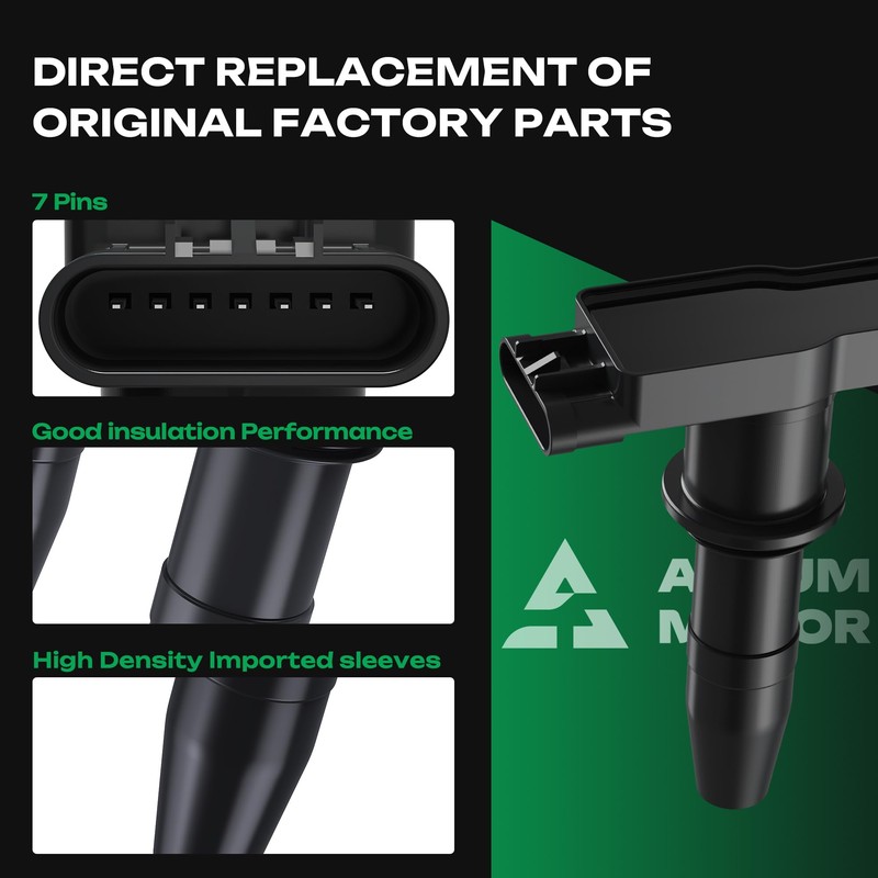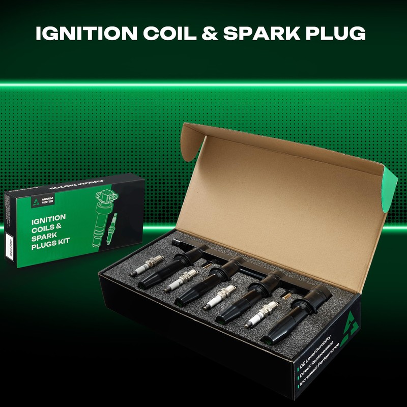 - High-Performance Spark Plug Coil Pack – Engineered with iridium Spark Plugs for 100,000+ mile durability and stable ignition. Ignition Coil Set features stainless-steel springs and heat-resistant connectors to prevent radio interference and fractures, ensuring smooth starts and fuel efficiency
