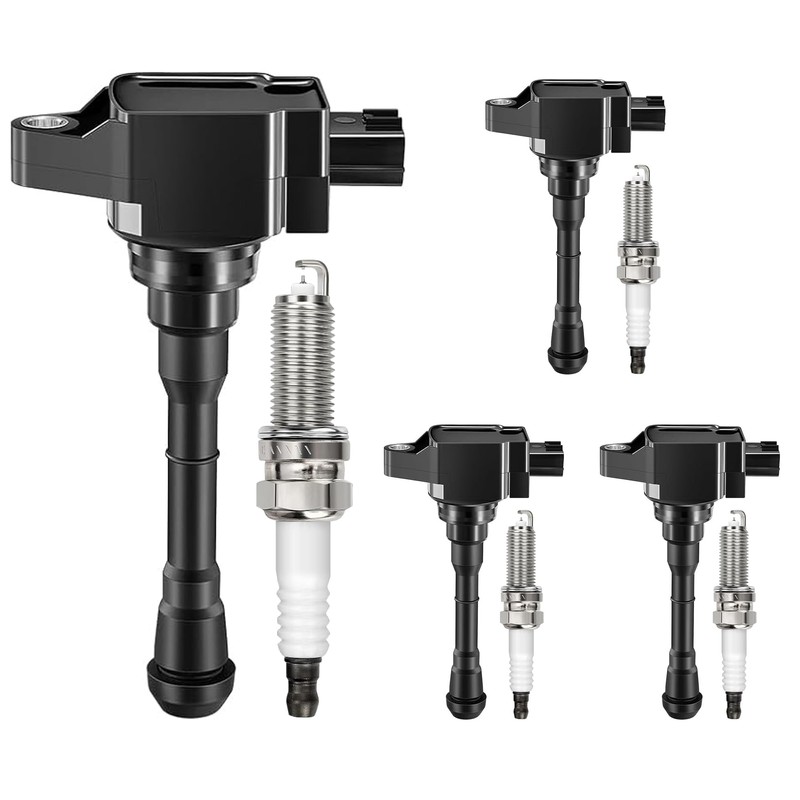 UF659 Ignition Coil and 91215 Spark Plugs Compatible with Nissan Juke 2011-2017 L4 1.6T, 4 Pack