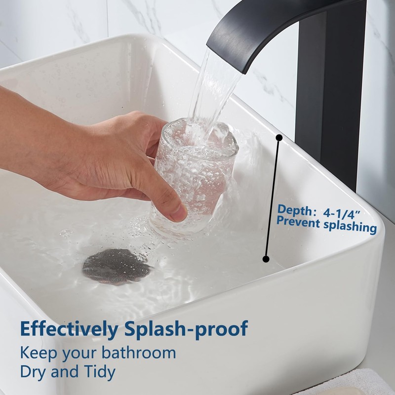 - Easy to Clean--Constructed with sturdy and durable ceramic material, using 1380 high-temperature firing. Interior and exterior smooth protect the sink surface against stains, making it easy to clean.