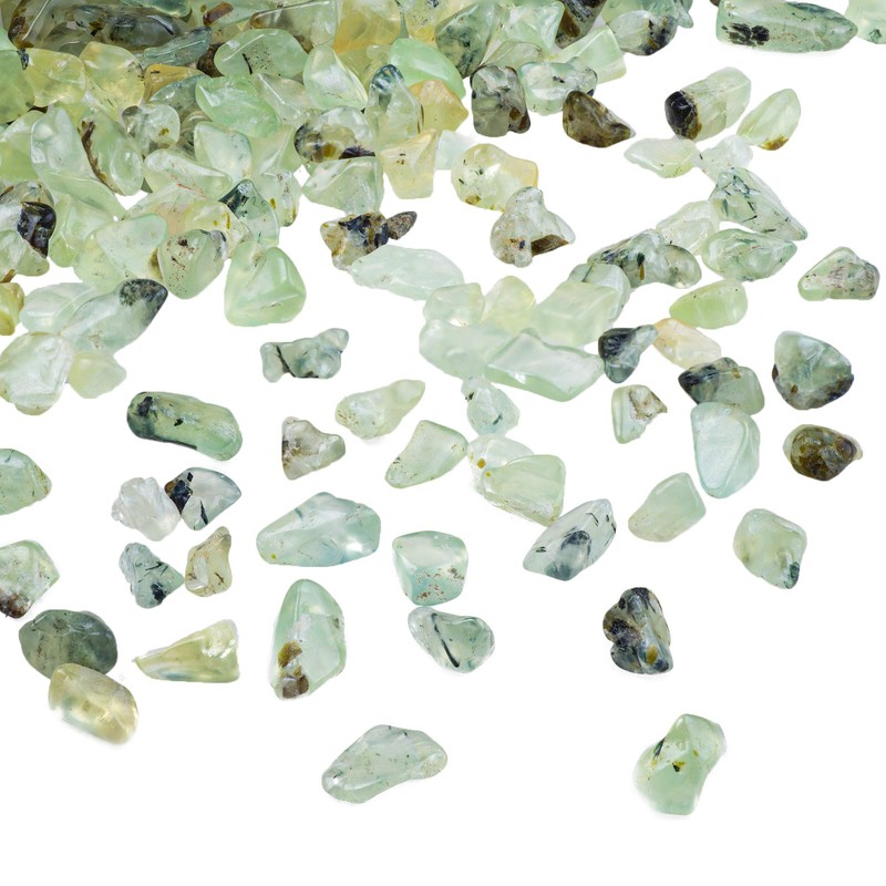 - Material: Prehnite Tumbled Chips Stone was crushed, screened and magnetically cleaned by natural crystal quartz, each pieces were irregular shaped, undrilled, no holes and clasp