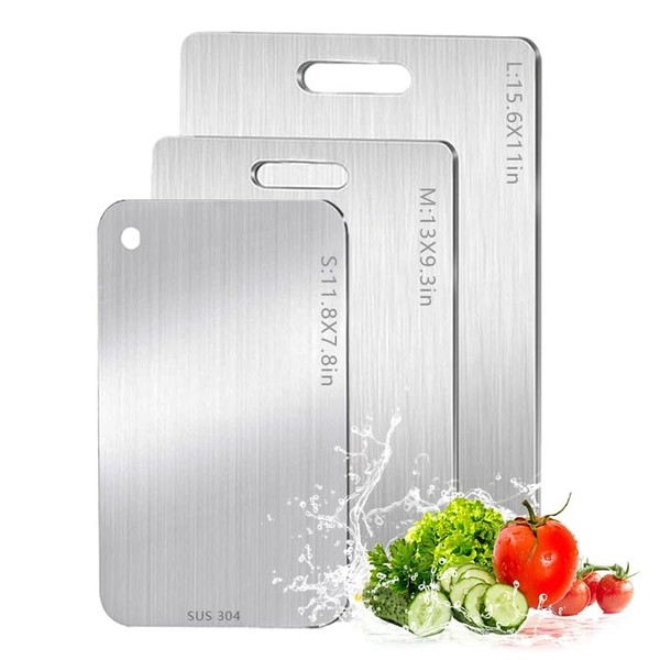 • Size:15.6" x 11", 13" x 9.3", 11.8" x 7.8",Engineered with three precision-cut dimensions, Our stainless steel cutting board collection delivers tailored solutions for every culinary challenge