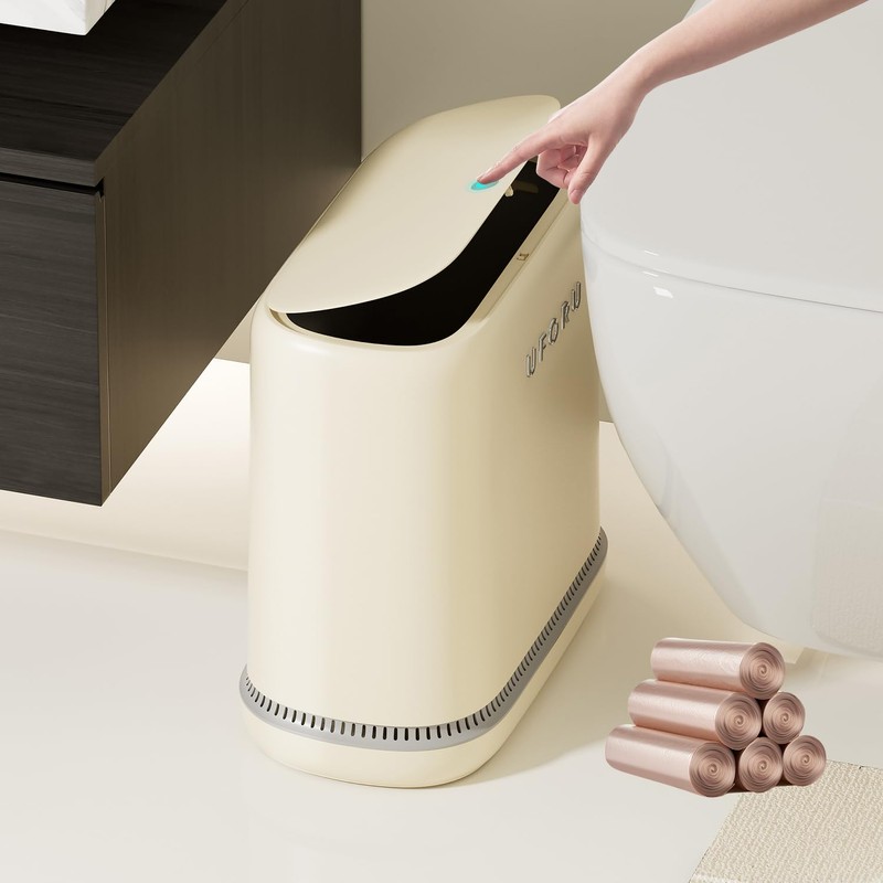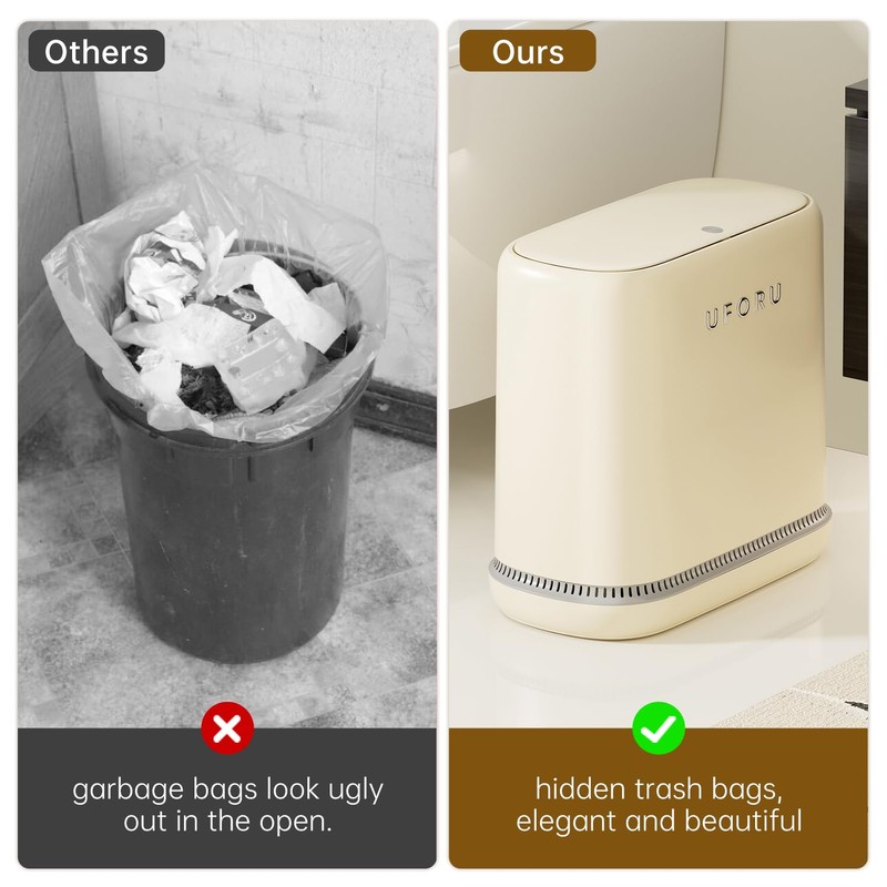 - Suitable for Narrow Spaces: The shape of our trash bin is in slim rectangle which is a space-saving design fits into small areas such as RVs, bathroom, dorm, tight corners,etc. Its cream modern style will make your place a good view