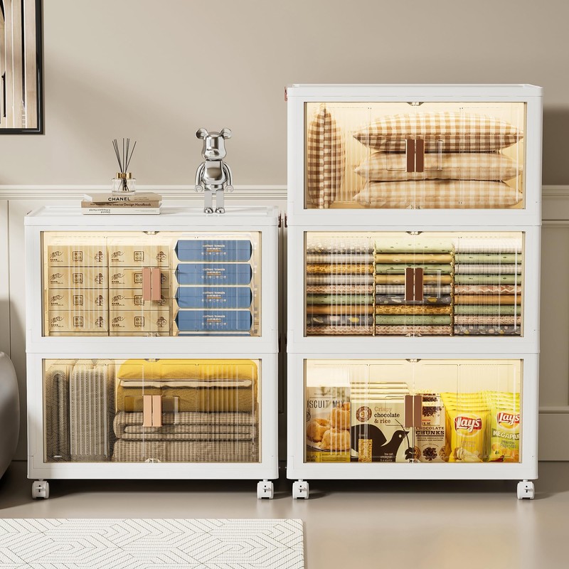 - Foldable, Stackable, & Space-Saving: Storage bins with wheels designed for convenience, these stackable bins require no tools for assembly. Simply snap the pieces together in seconds to create sturdy storage containers for organizing solutions. When not in use, they can be folded flat, saving valuable space in your home. this makes them ideal for apartments, dorm rooms, or any tight area
