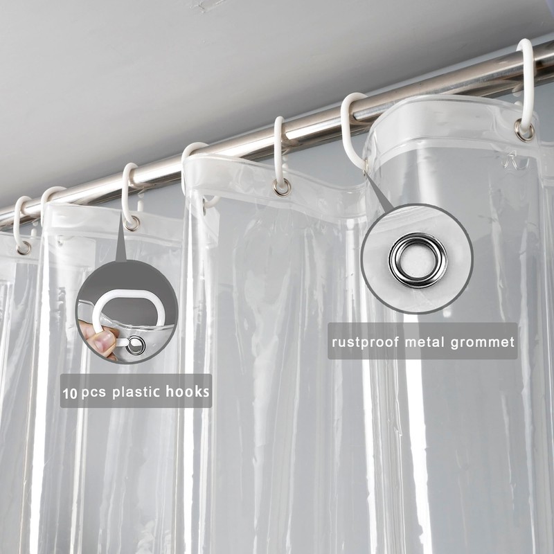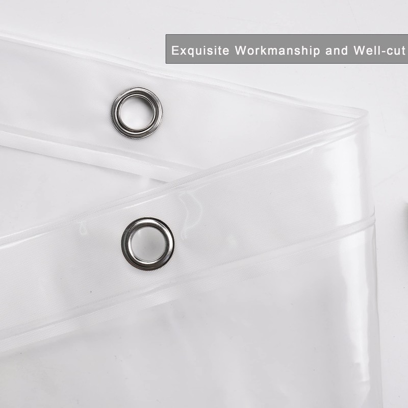 - 🌿【Style and Size】:The transparent and clear shower curtain liner brings bright light to your bathroom.Shower curtain measures 60" width x 72" length,shower curtain 72 inches long,suitable for standard bathtub and shower area.