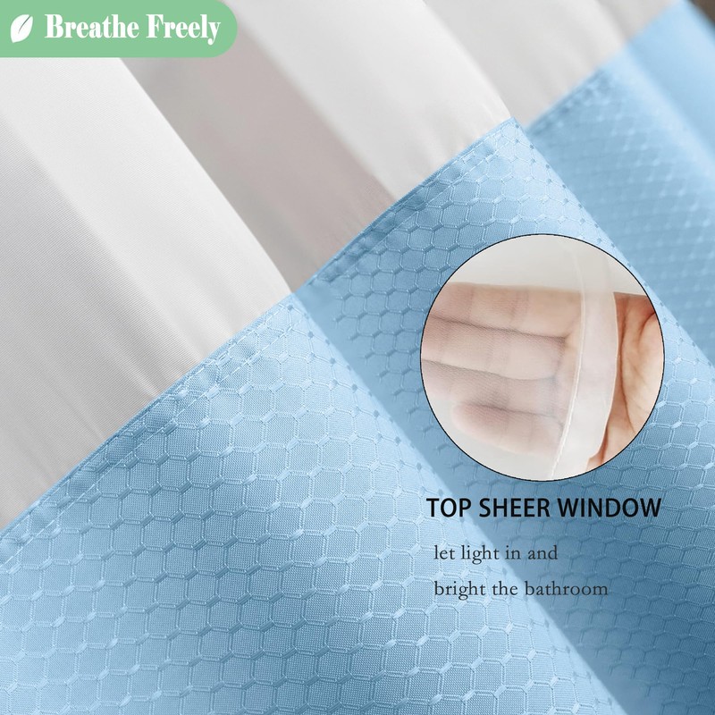 - Has a White Top Sheer Section:White waffle lattice pattern fabric design with light-filtering mesh window at head levels to let light into your shower,create a breathable feeling,while still providing the privacy you desire