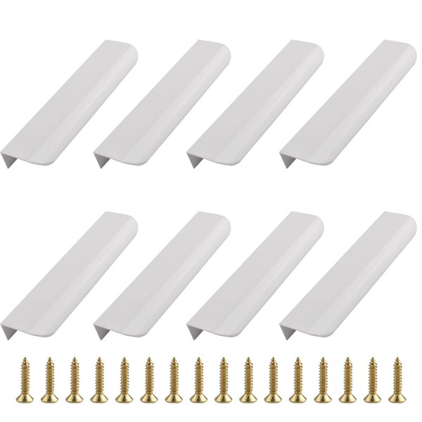UFURMATE Back Mount Finger Edge Pull, 8Pcs White Aluminum Alloy Hidden Handles Curved Edges Concealed Finger Pull Handles Invisible Tab Pulls for Drawer, Cabinet (150mm/5.9in)