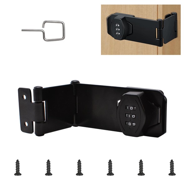 UFURMATE Door Hasp Locks 1 Piece Black Zinc Alloy Cabinet Password Hasp Locks 180 Degree Rotary Knob Key Lock Hasp Coded Cabinet Lock for 90 180 Degree