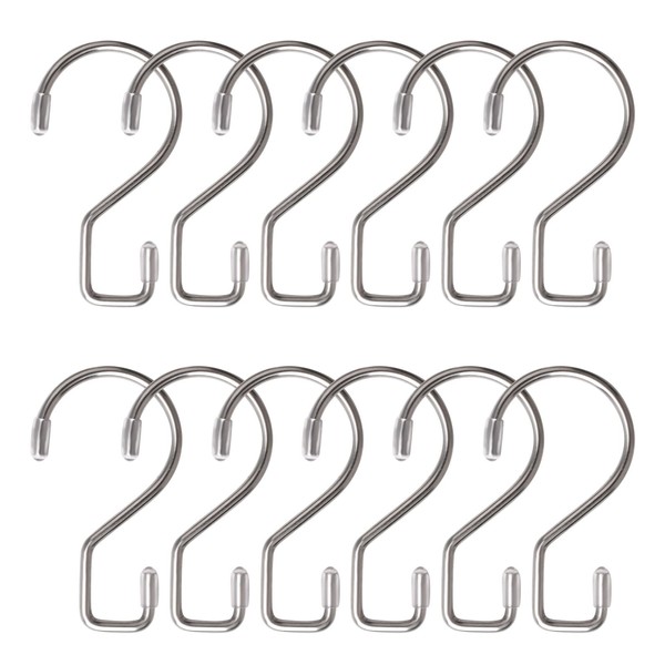 UFURMATE S Hooks, 12 Pieces Stainless Steel S-Shape Hanging Hooks, Heavy Duty Closet Rod Hooks, Multipurpose Hooks for Kitchen, Bathroom, Closet, Garden (Silver)