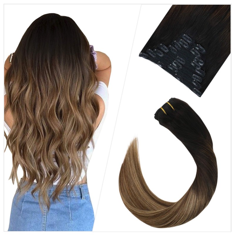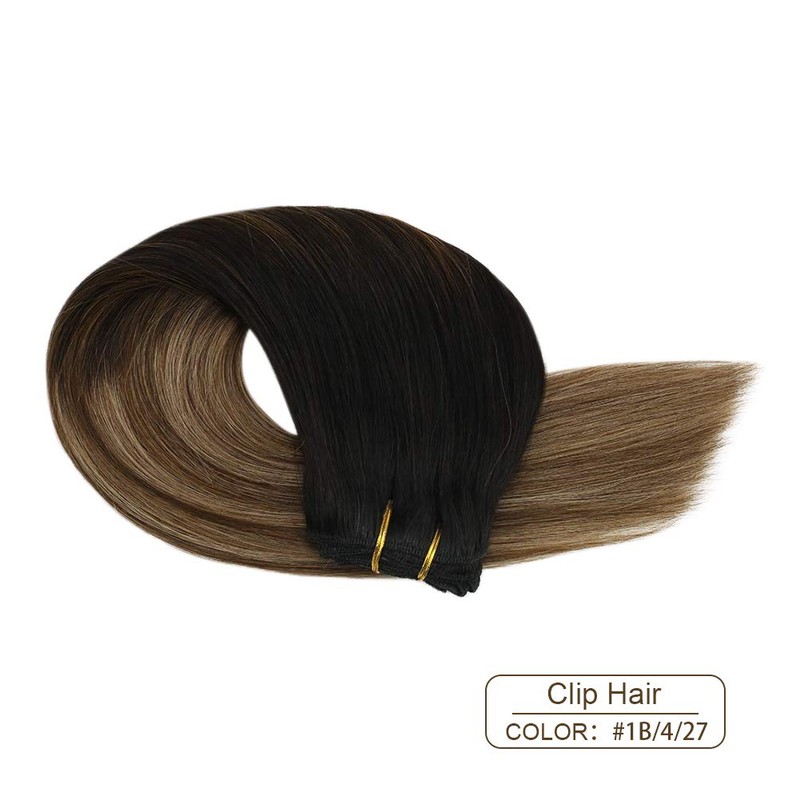 • Details ★ #1B/4/27 Balayage off black to dark brown with caramel blonde color with 10PCS/120G (20G clips and 100G hair) clip in hair extensions. Incredibly easy to apply to every position you want.