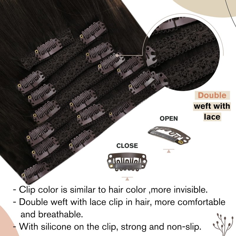 - Lace Clip in Hair Extensions Human Hair★Lace covered double weft,quality metal clips are well sewn into each weft firmly,easy to put in and take off as you want.