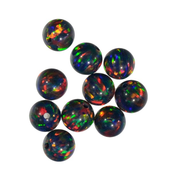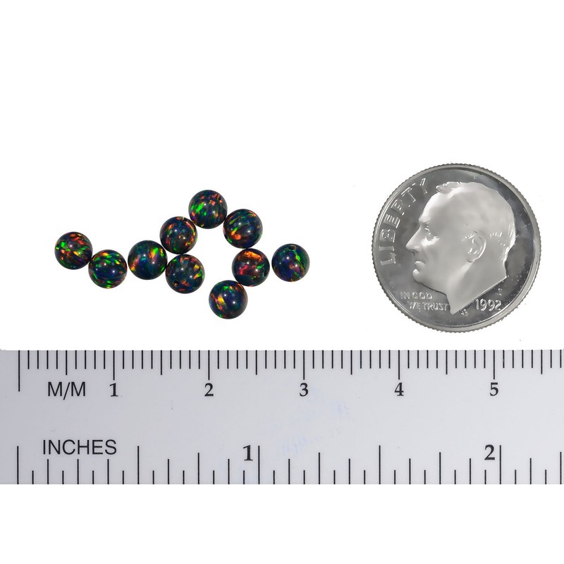uGems® 10 Black Created Opal Round Beads for Fine Jewelry – 4mm Fully Drilled Synthetic Lab Opal Beads with Black Base, Kyoto Method – Sold in Sets of 10 – SKU: gem03312