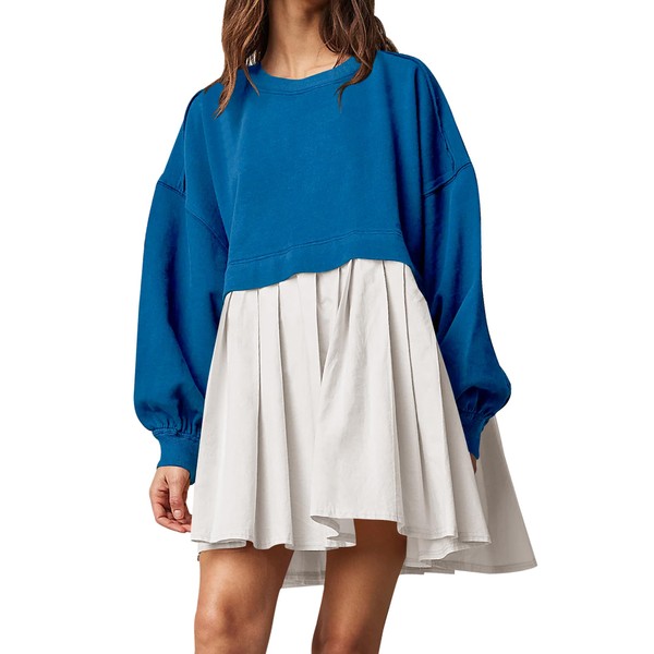 • Feature: Sweatshirt dress, mini dress, oversized sweatshirt for women is featured in crew neck, dropped shoulders, pleating at bottom, heart stitching at back, sloghtly exaggerated sleeves for a stylish and relaxed fit style, this super versatile sweatshirt is the ideal piece to take your pullover game up a notch