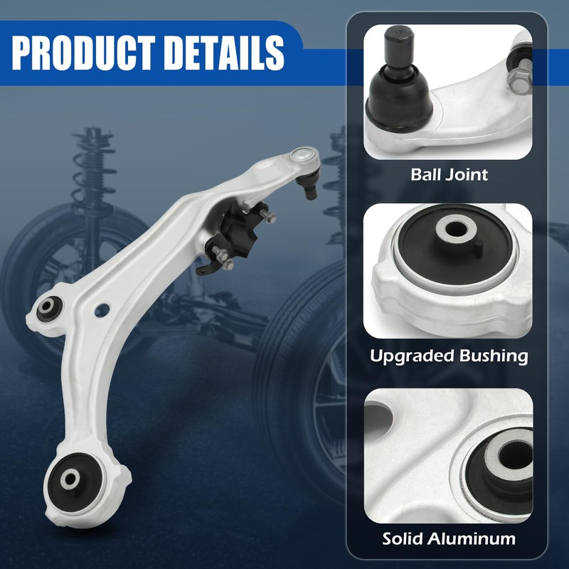- [PACKAGE INCLUDED]1 *Left Front Lower Control Arm with Ball Joint & Bushing, 1 *Right Front Lower Control Arm with Ball Joint & Bushing