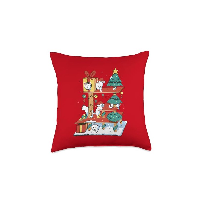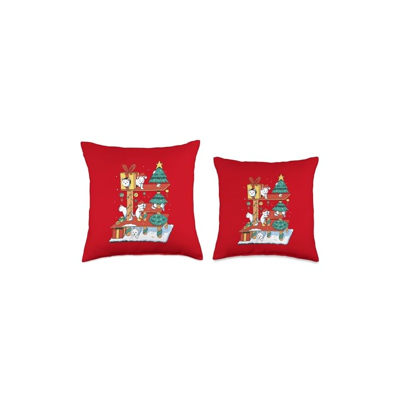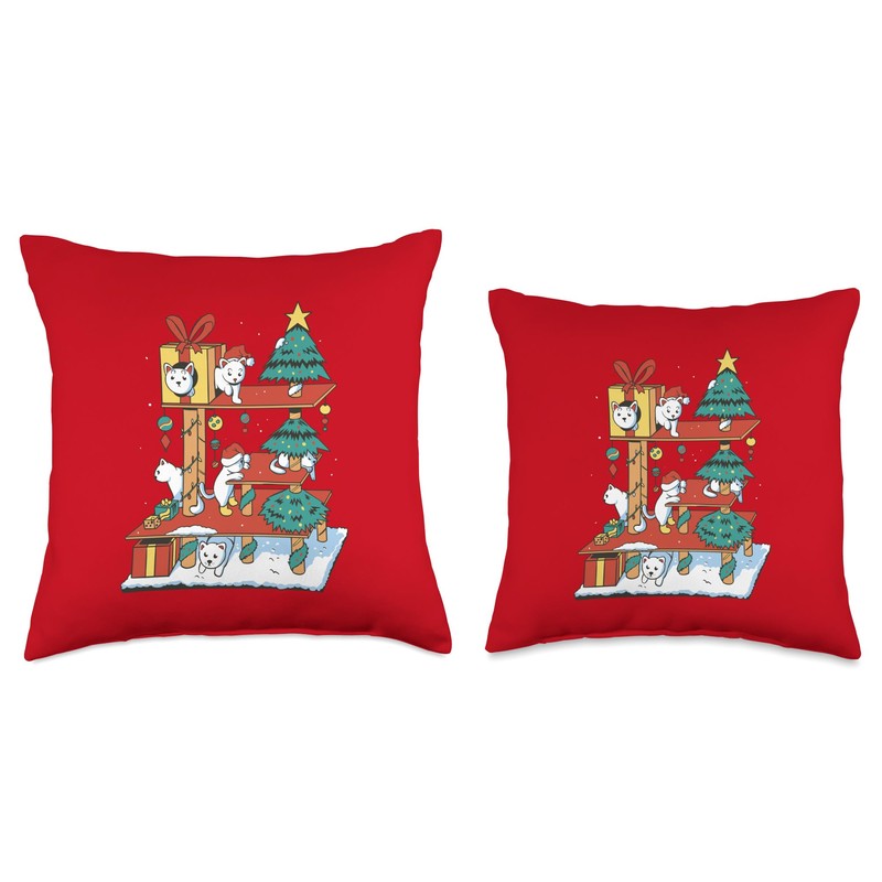 Ugly Christmas Cat Scratching Post Christmas Tree Advent Throw Pillow