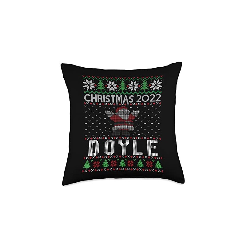Ugly Christmas Doyle sweater Funny Matching Ugly Christmas Personalized Name Doyle Throw Pillow, 18x18, Multicolor
