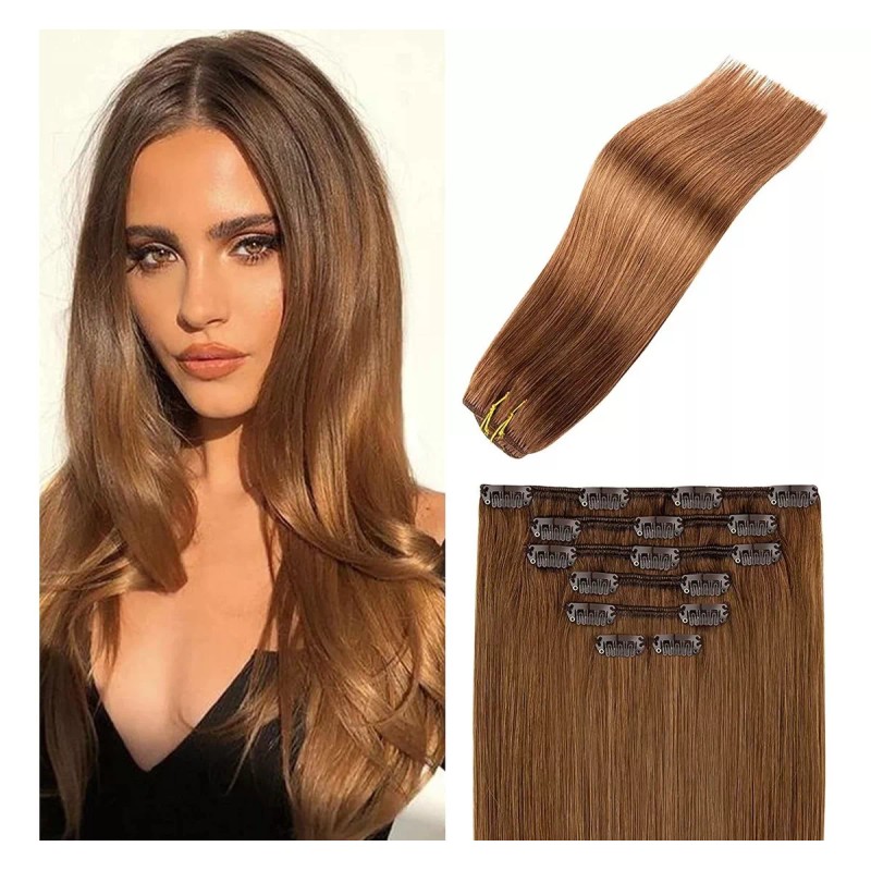 Extensiones de cabello con clip de 22 pulgadas castaño chocolate 8A cabello humano largo y lacio 100% natural 70g7PCS(22in #6)
