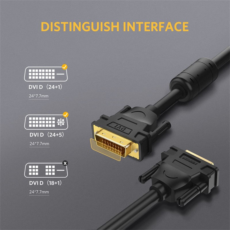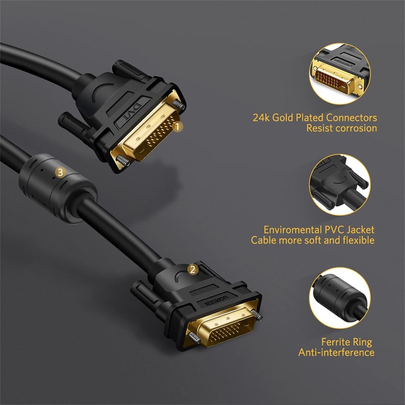Ugreen 11617 DVI 24+5 to VGA Dual Link Cable, 1.5 Meter, Black