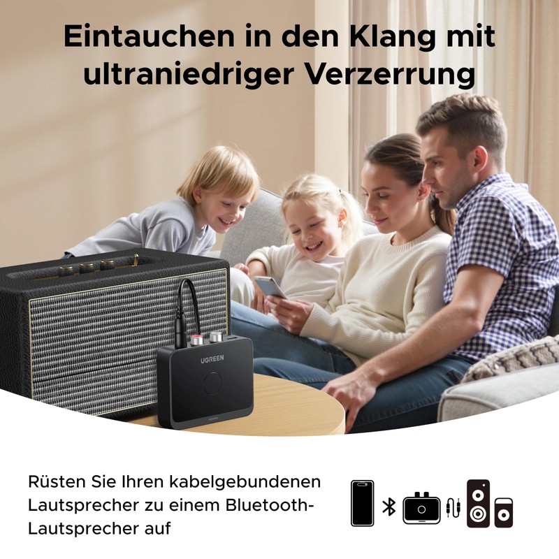 UGREEN Bluetooth 6.0 Adapter Stereo System with LDAC Decoding, Hi-Res Audio Gold Standard Certification, Aux Bluetooth Audio Receiver Compatible with Speaker, Amplifier and Car Radio