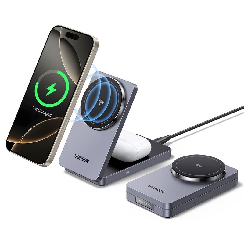 • (2 in 1) UGREEN Qi2 wireless charger can rapidly charge your iPhone 16 (15 w) and AirPods (5 w) simultaneously. Supports iPhone Qi2 with up to 15W output for wireless charging. Tips:Recommend to use 30W or higher charger(charger not included)