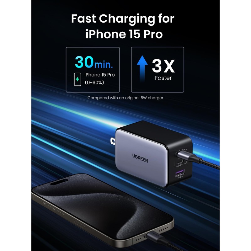 UGREEN UGREEN 100W USB C Charger Block Nexode X 3-Port GaN Foldable PPS Fast ...