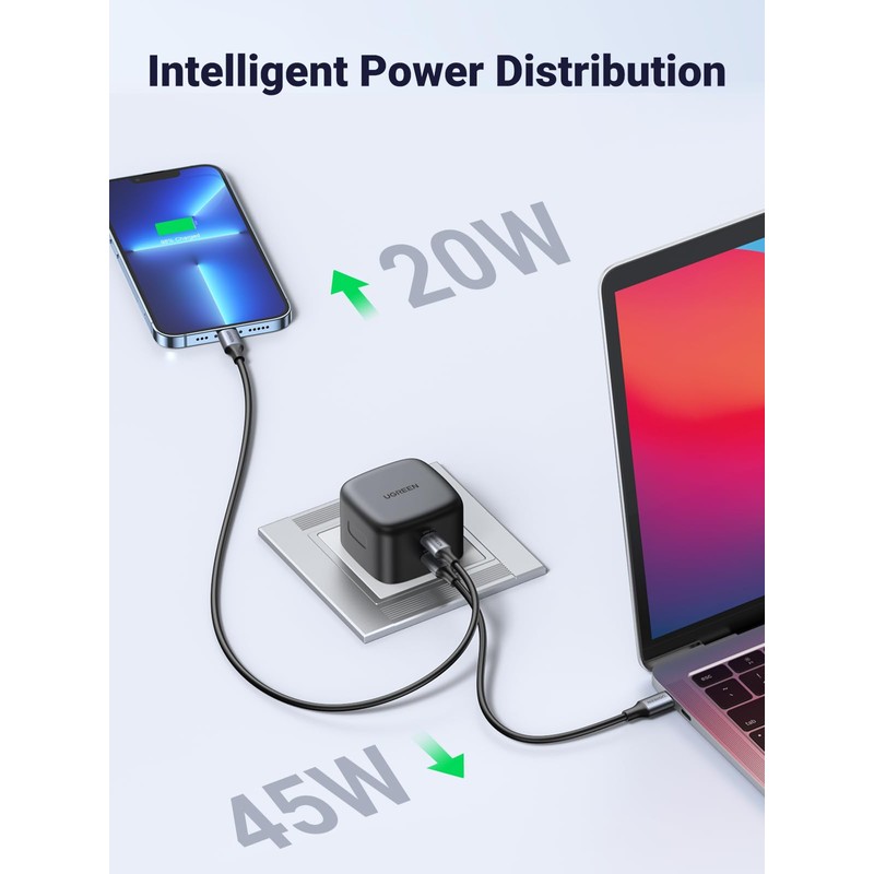 UGREEN UGREEN USB C Charger 65W Plug GaN Charger 2-Port Fast Charging Laptop Charger Compatible with Macbook Pro/Air, iPhone 16/15/14, iPad Air/Mini, Galaxy S24/S23, Pixel 9, etc (Black)