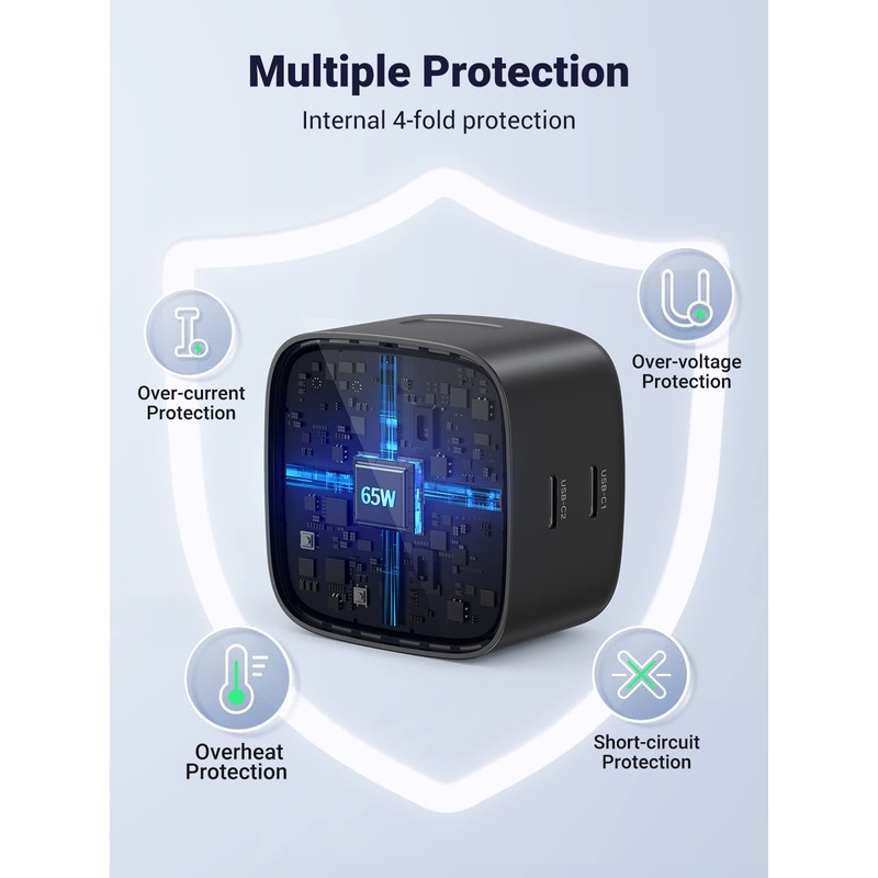 - Safer Charging: Built-in multiple protections, this 65W USB C Charger provides a safer charging experience for you.