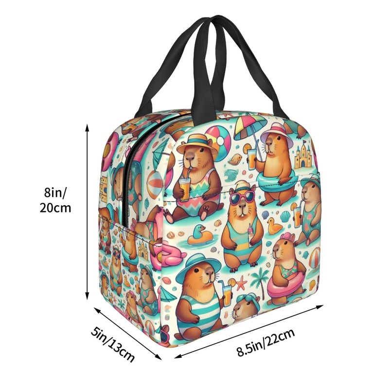 UGTEWXU Capybara Lunch Bag Capybara Print Fashion Cute Large Capacity Lunch Bag With Handle,Reusable Insulated Lunch Bag for Both Men And Women 1