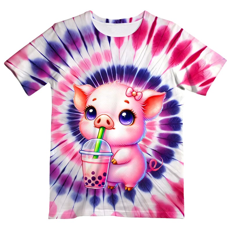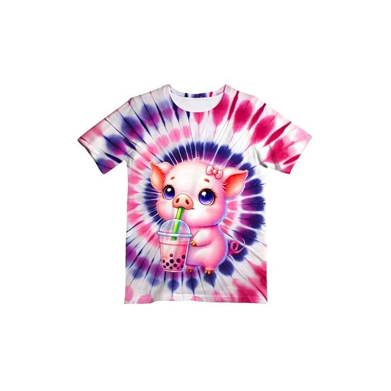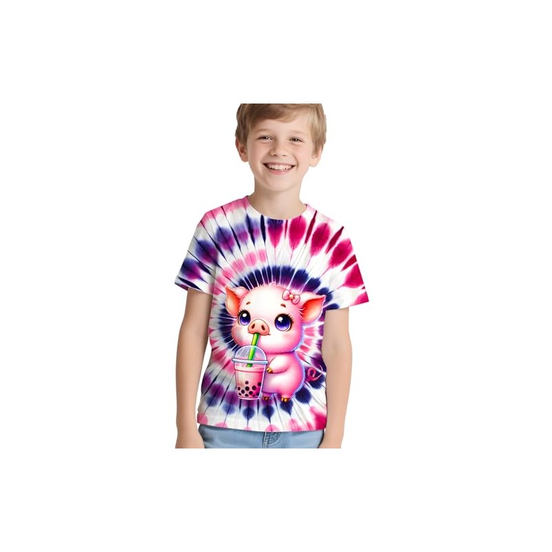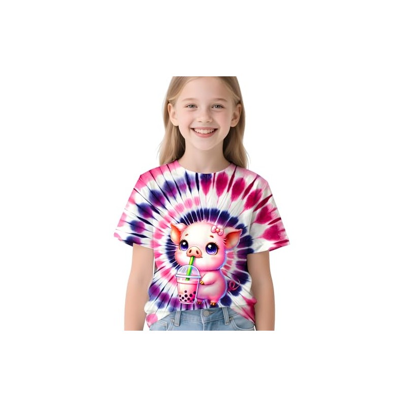 UGTEWXU Kids Pink Purple Tie Dye Shirt for Girls Boys Pink Pig Shirts Girl Pink T-Shirt Hippes Tee 6-16 Years Age Size Small